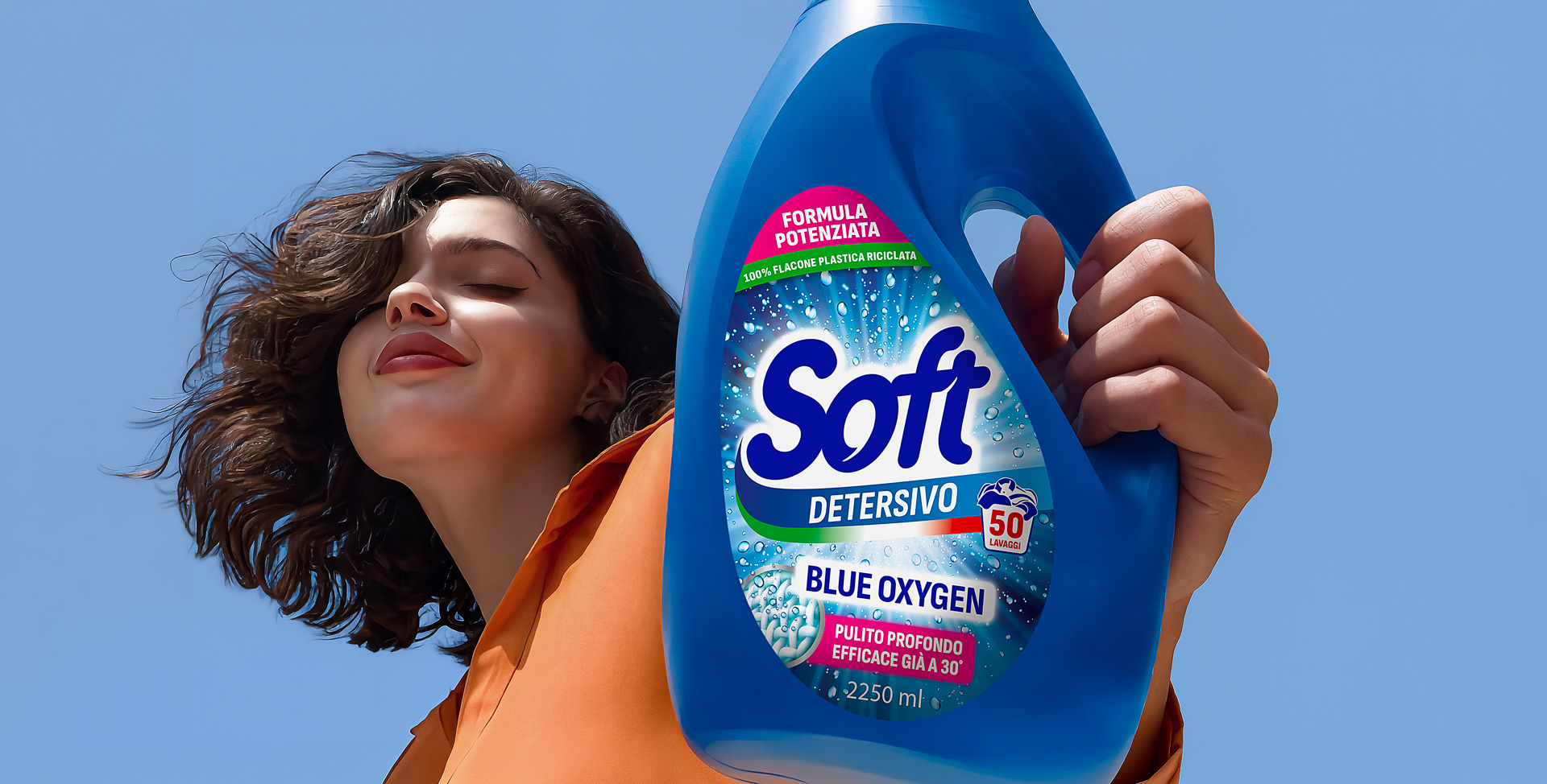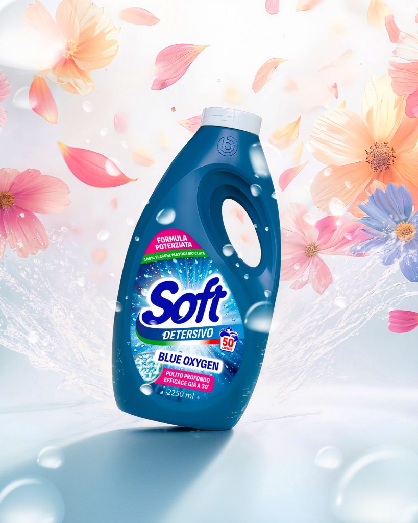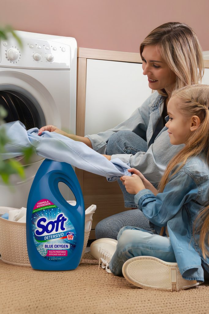 SOFT È LA LINEA TUTTA ITALIANA DI DETERGENTI E AMMORBIDENTI PENSATA PER LA VITA DI TUTTI I GIORNI: