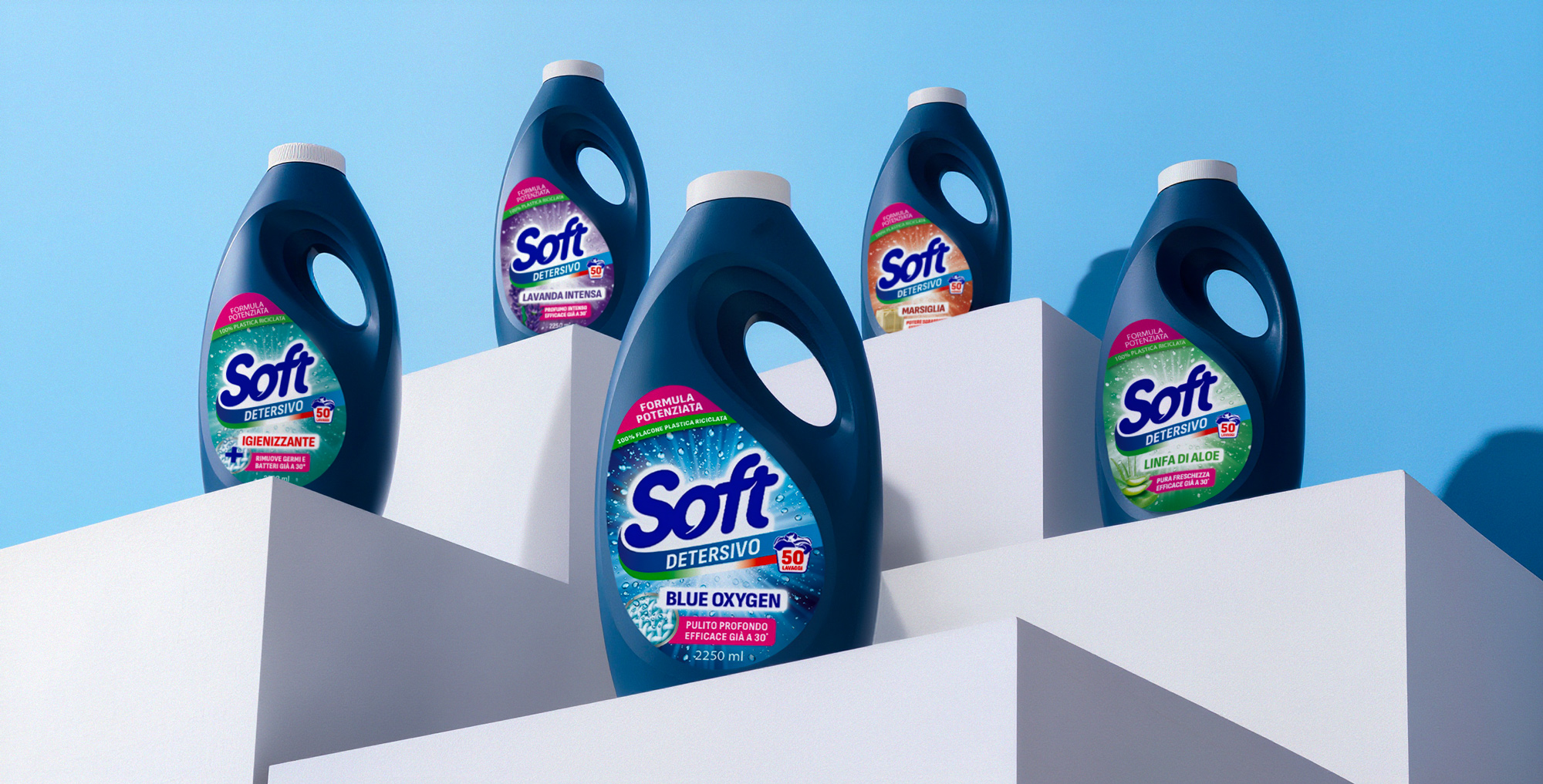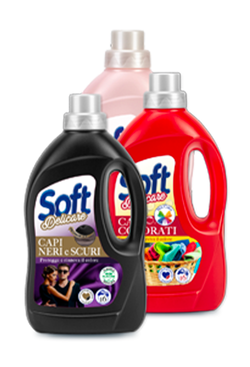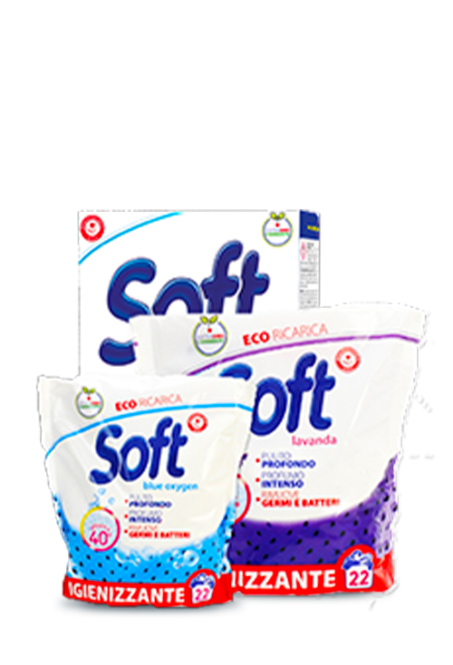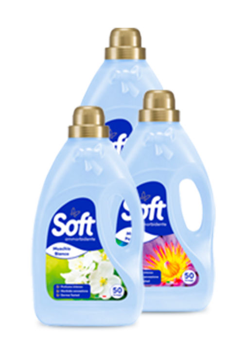 Soft è la linea tutta italiana di detergenti e ammorbidenti che si prende cura del tuo bucato ogni giorno: efficace sullo sporco, delicata sui tessuti e con profumi che fanno stare bene. Garantisce un pulito perfetto e sicuro, perché le sue formule sono pensate per evitare agenti aggressivi, nel rispetto della persona e dell’ambiente.