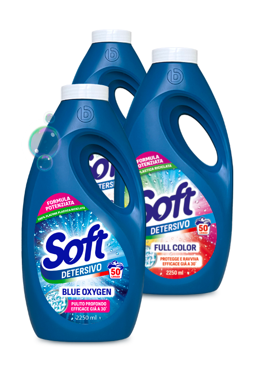 Soft è un marchio Biochimica, con più di 50 anni di esperienza in formulazione e produzione: i nostri detersivi utilizzano enzimi biologici efficaci anche a basse temperature e additivi con la forza dell’ossigeno attivo per le macchie più difficili. In più, collaboriamo con le migliori case profumiere per creare fragranze intense e persistenti senza microcapsule, evitando il rilascio di formaldeide sui capi a contatto con la pelle.